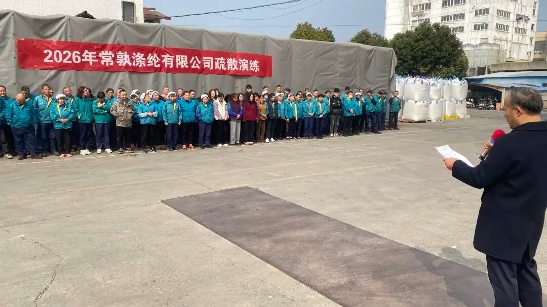 Kanggo ngleksanakake syarat sing cocog karo Undang-Undang Produksi Safety lan Bor Darurat kanggo Darurat, lan kanggo ningkatake kemampuan evakuasi lan uwal karyawan nalika ana geni, Changshu Polyester Co., Ltd. nganakake latihan evakuasi darurat tanggal 11 Februari. Divisi Polyester lan Divisi Lida nindakake latihan kasebut kanthi tertib ing jam 12:00 lan 13:00 ing dina sing padha, kanthi total 357 karyawan saka loro divisi kasebut melu latihan kasebut.